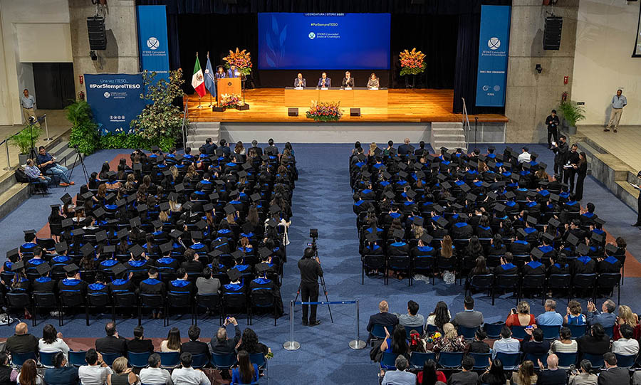 Destacó que en el ITESO se busca formar personas que no sean únicamente profesionales competentes, sino también seres humanos sensibles y comprometidos: “Un elemento clave en su formación fue el amor, ese amor que se percibe en este auditorio y que fue nutrido por sus madres, padres y seres queridos, quienes les ofrecieron su apoyo para que pudieran enfocarse en los estudios”.
